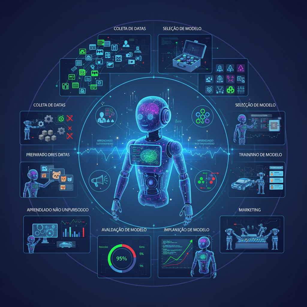 4. **Treinamento do Modelo:** O modelo selecionado é treinado utilizando os dados preparados. Durante o treinamento, o algoritmo ajusta seus parâmetros internos para minimizar o erro e maximizar a precisão.