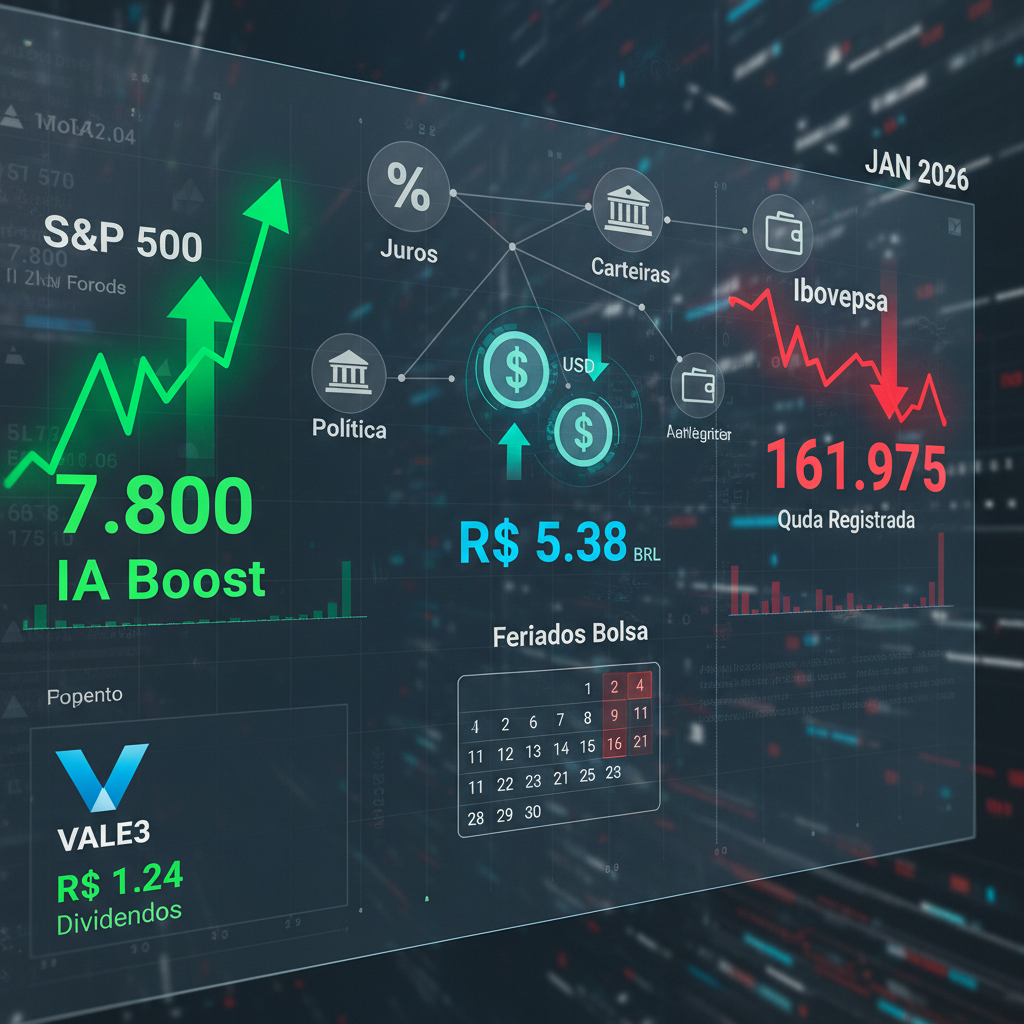 Diante de um cenário com juros no centro das atenções e a política no radar, bancos e corretoras ajustam suas carteiras recomendadas para janeiro de 2026, buscando equilibrar cautela e oportunidades na bolsa brasileira. A agenda de dividendos e JCP de janeiro também é um ponto de atenção para investidores, com destaque para a Vale (VALE3), que pagou uma parcela de dividendos de aproximadamente R$ 1,24 por ação no dia 7 de janeiro.