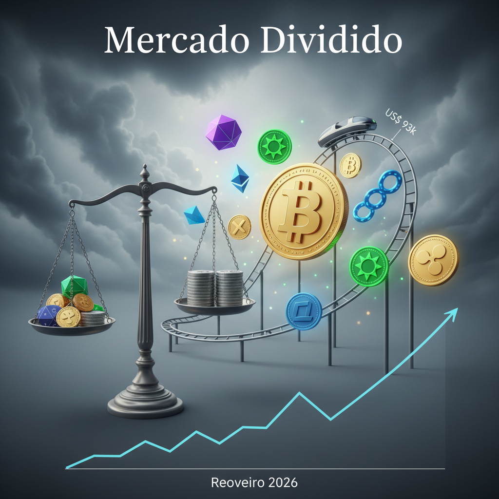 **Mercado Dividido em Relação ao Bitcoin.** Apesar da alta acumulada de 7% desde o início de 2026, o mercado se mostra dividido em relação ao futuro do Bitcoin. A incerteza persiste, e os investidores devem acompanhar de perto as análises e indicadores.